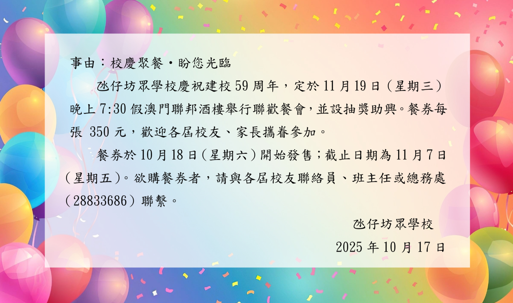 校慶聚餐.盼您光臨
