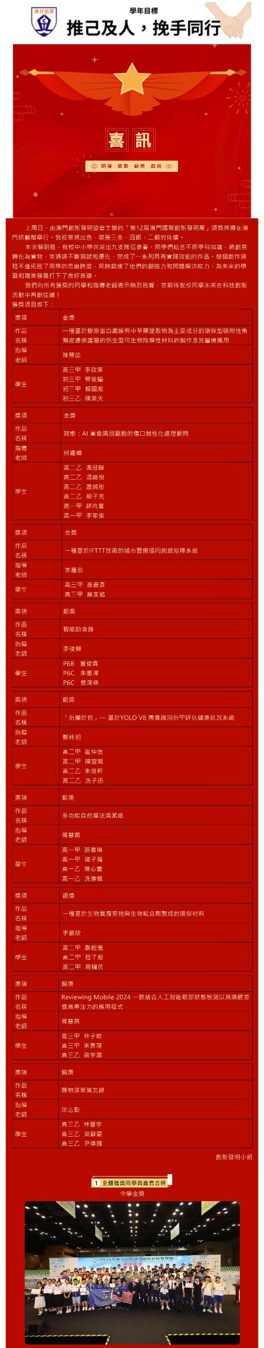 喜訊-我校同學在「2025第13屆澳門國際創新發明比賽」獲三金四銀佳績