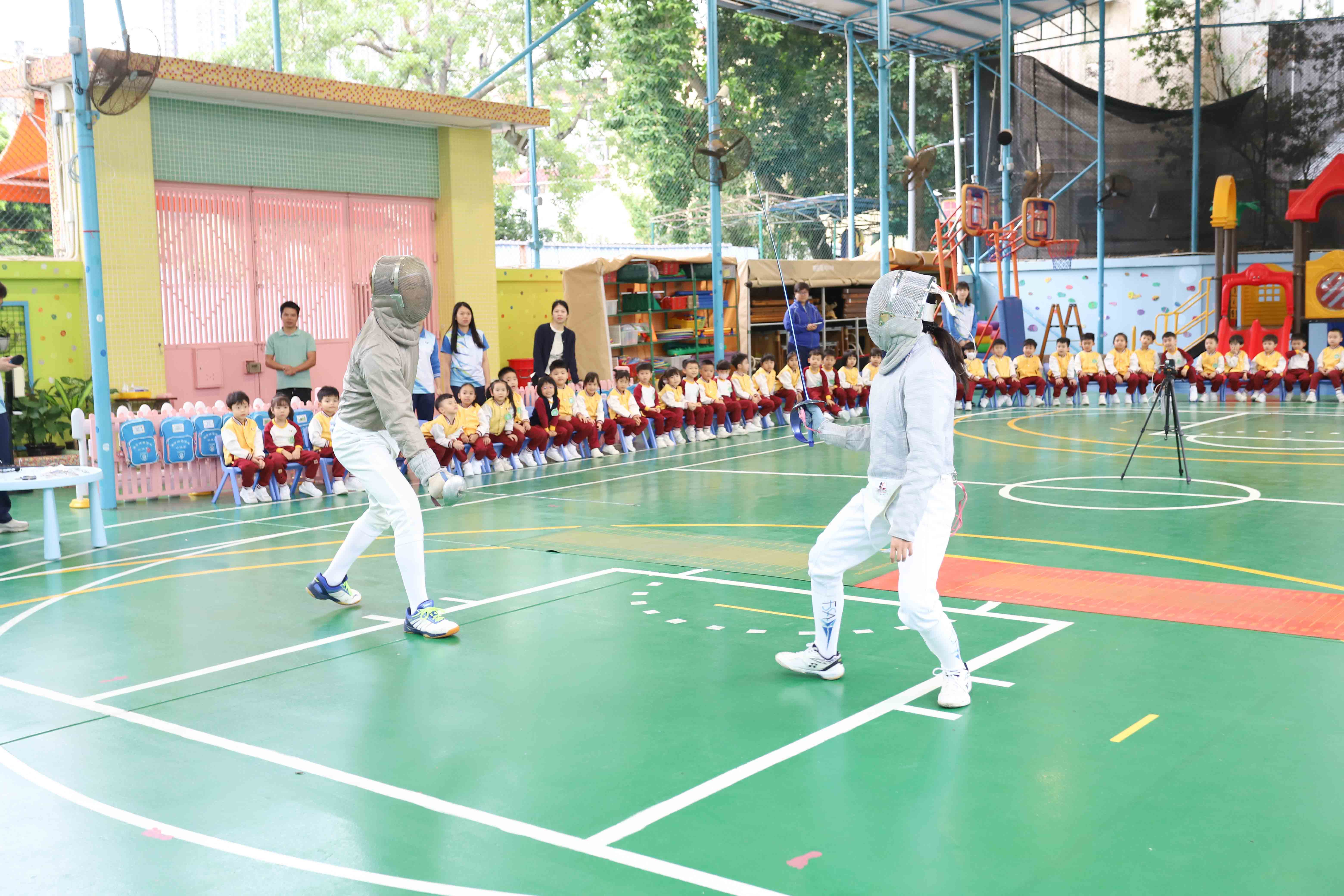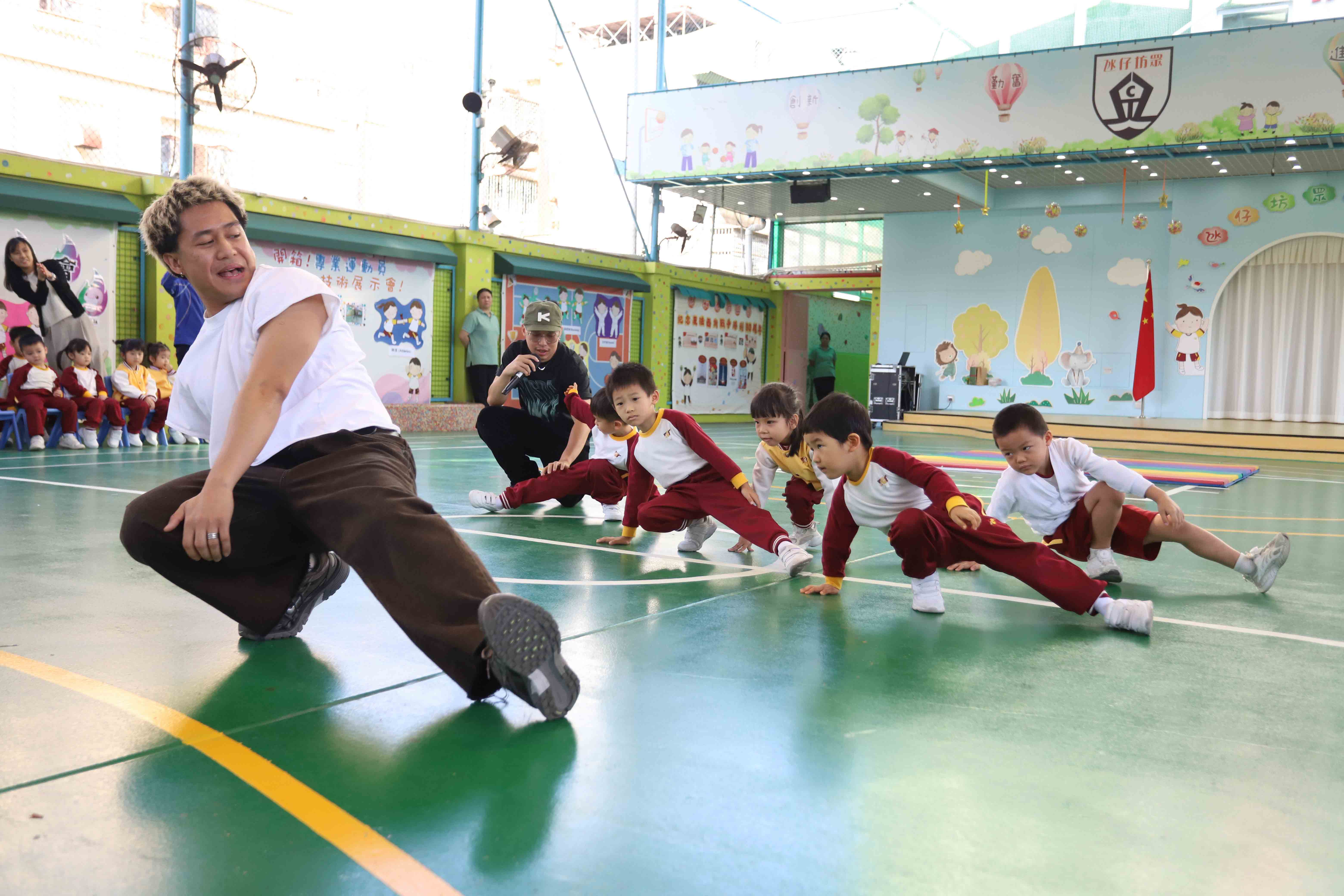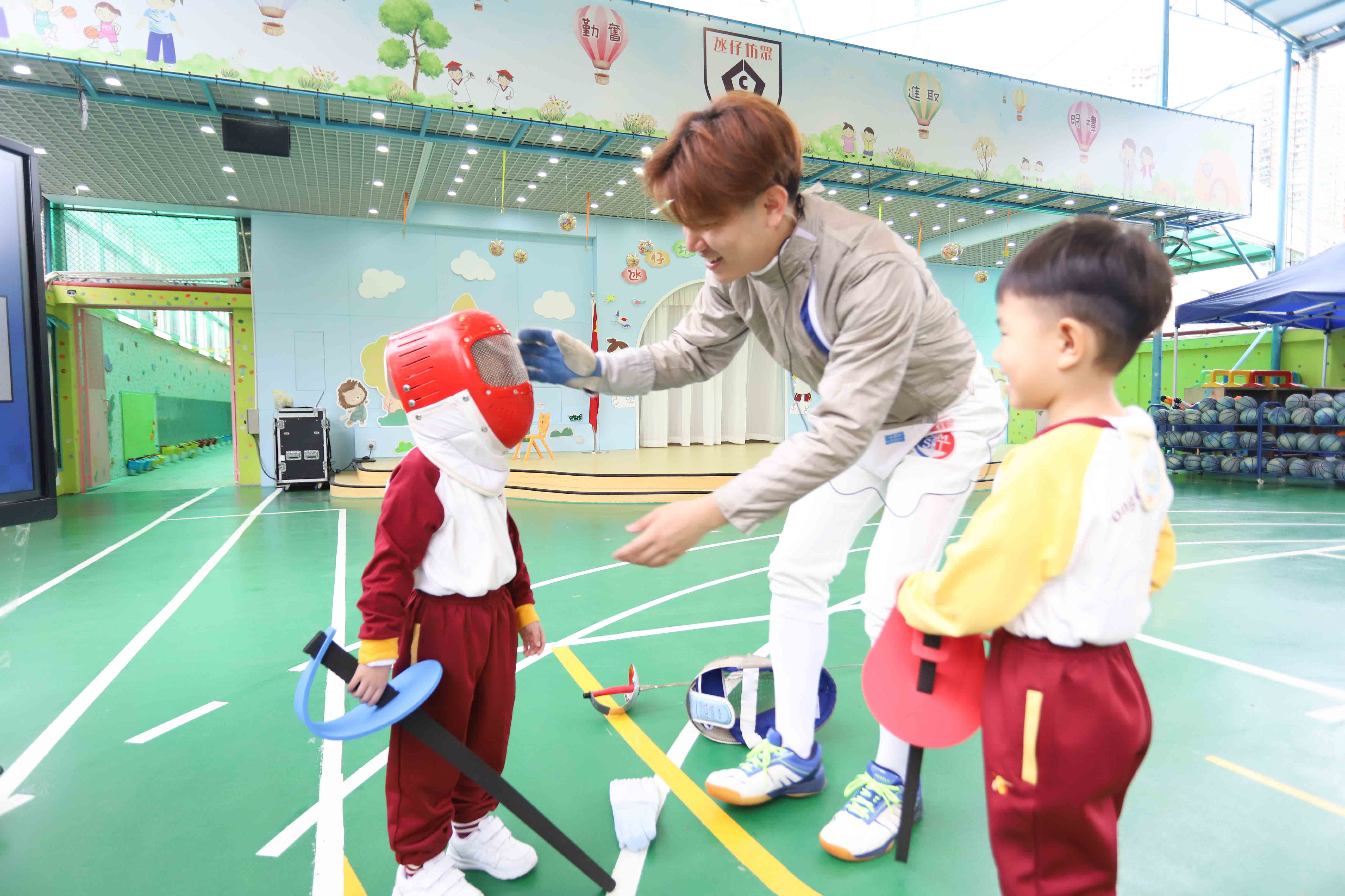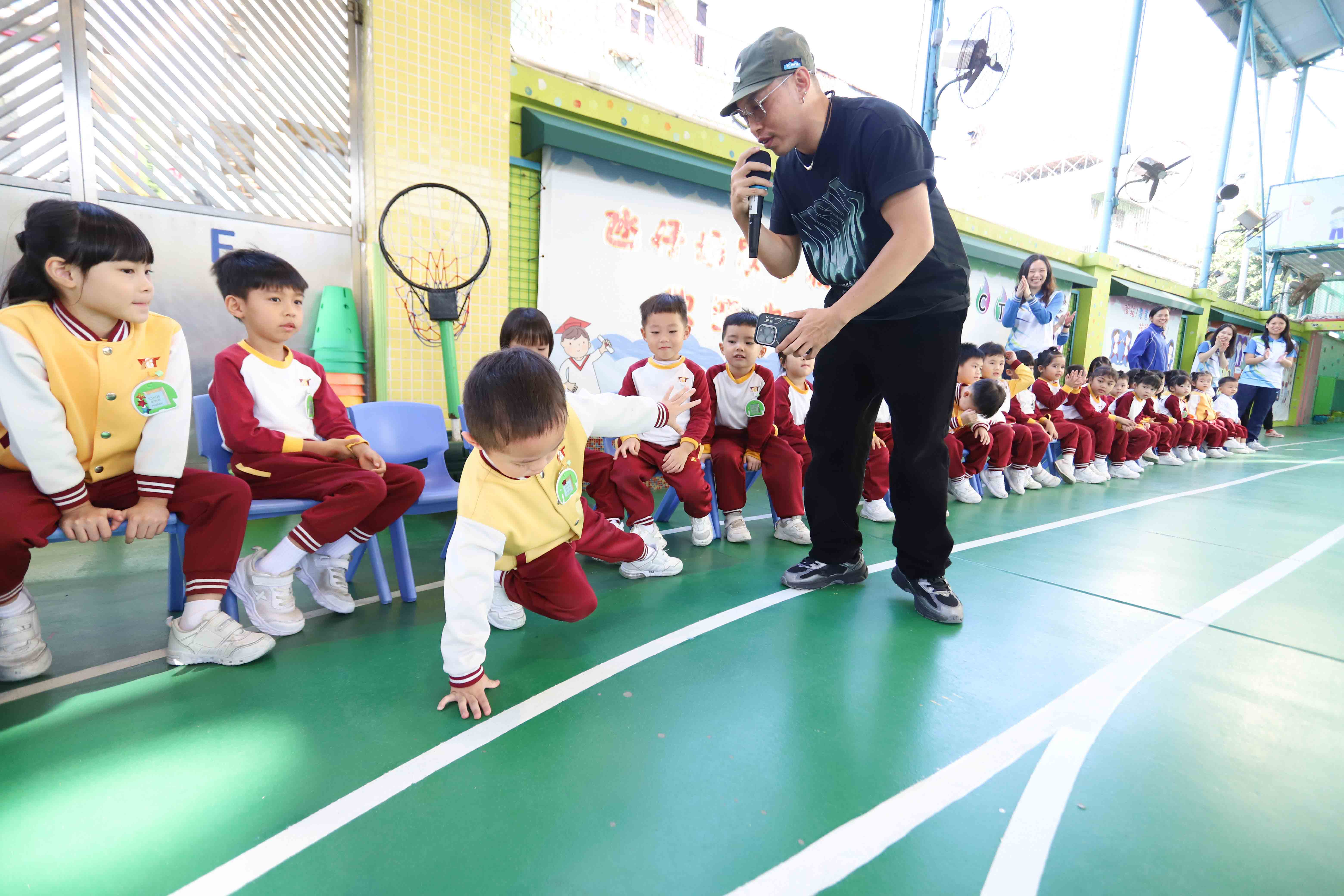 活動以「全運多元運動」為主題,精選八項特色項目依次登場:花式單車的高超平衡技術引來驚呼連連;劍擊展現優雅與敏捷的雙重魅力;接力跑讓幼兒切身體會團隊合作的力量;霹靂舞以強烈節奏瞬間點燃全場氣氛;籃球代表選手示範傳球與投籃並與幼兒互動交流;乒乓球項目中,小學生的示範吸引幼兒目光,幼兒在專屬小球台上揮拍練習,提升專注與反應;羽毛球環節讓幼兒體驗精准發球的樂趣;手球活動中,幼兒在模仿與傳球中學會配合,展現勇於挑戰的精神。
