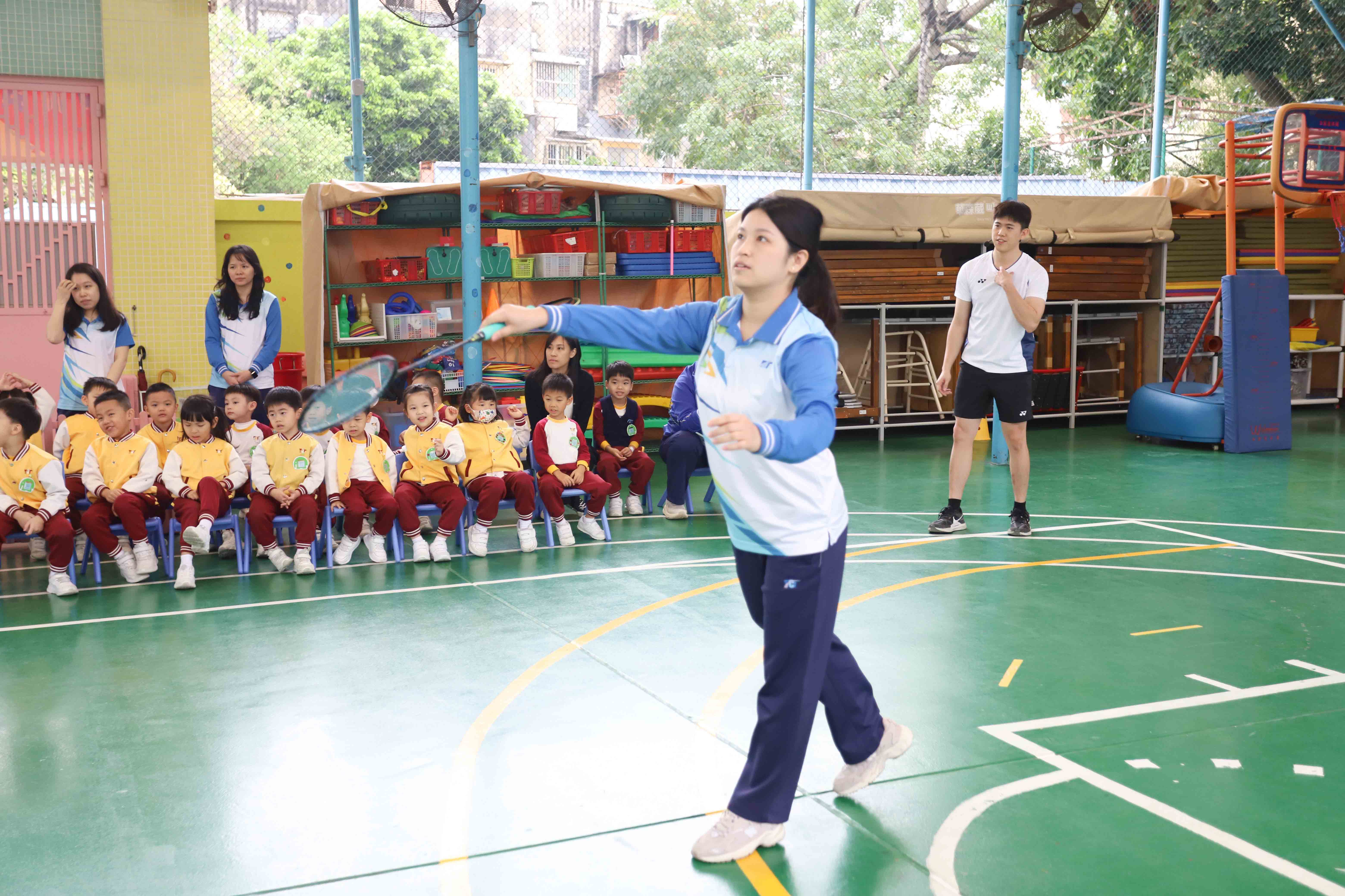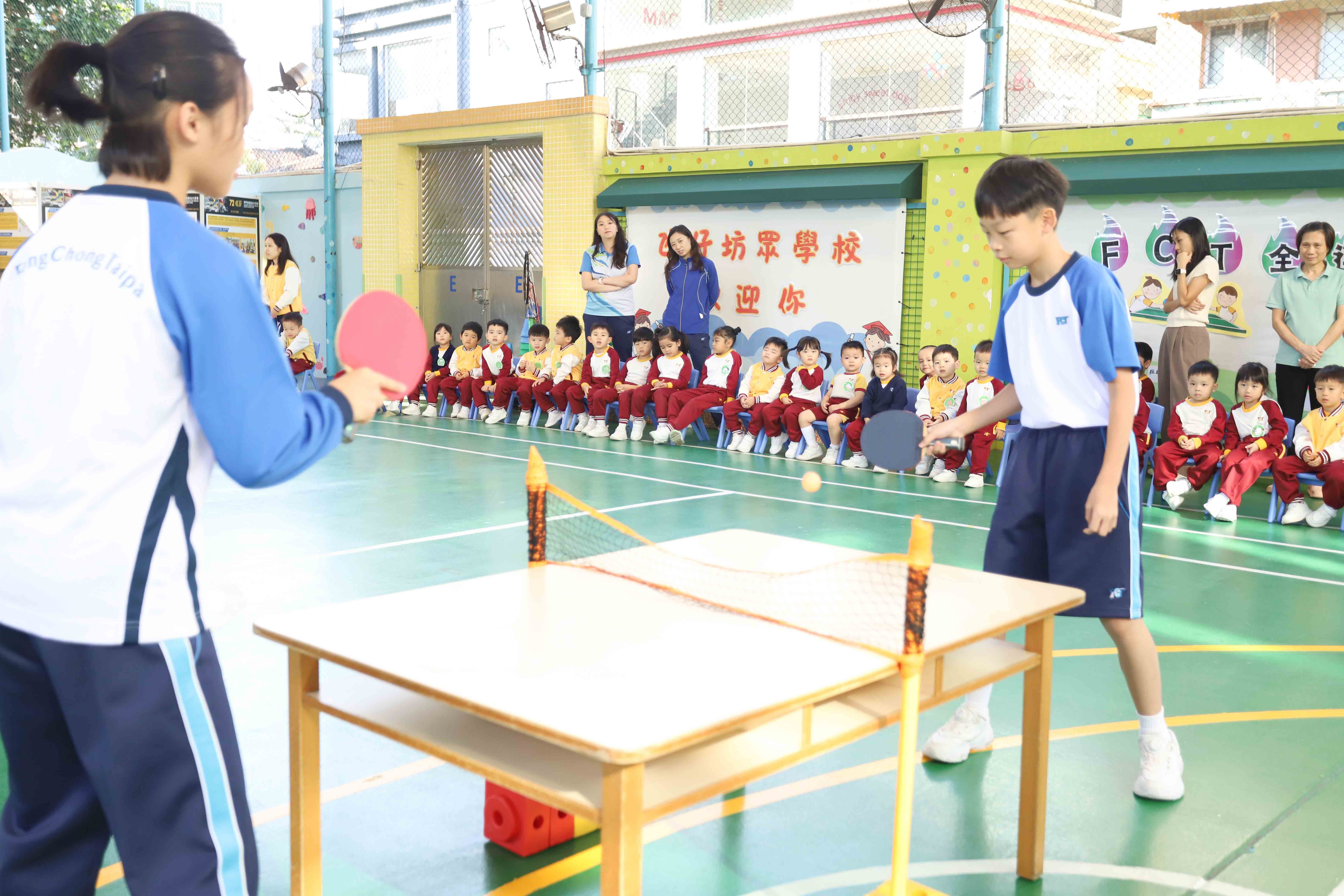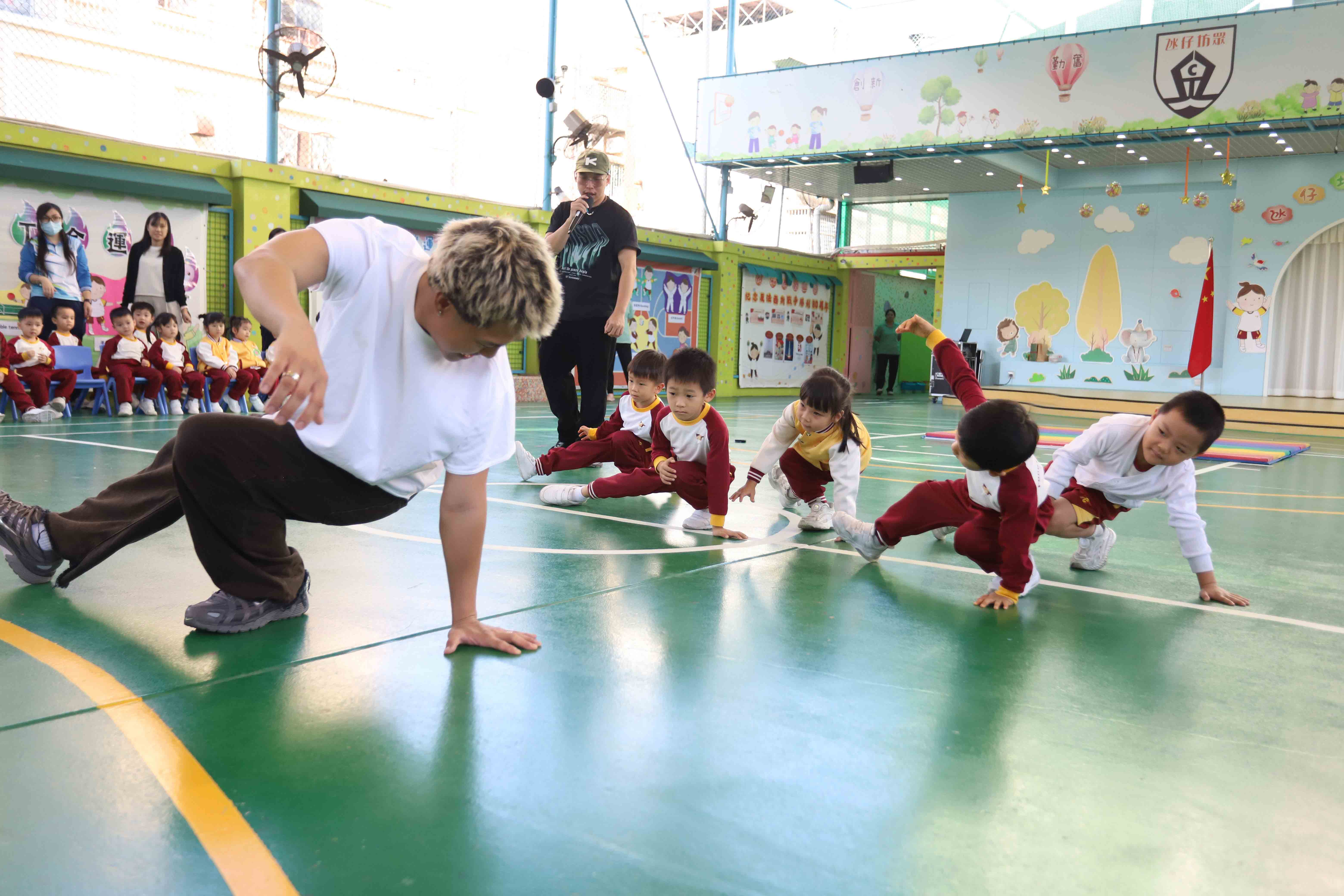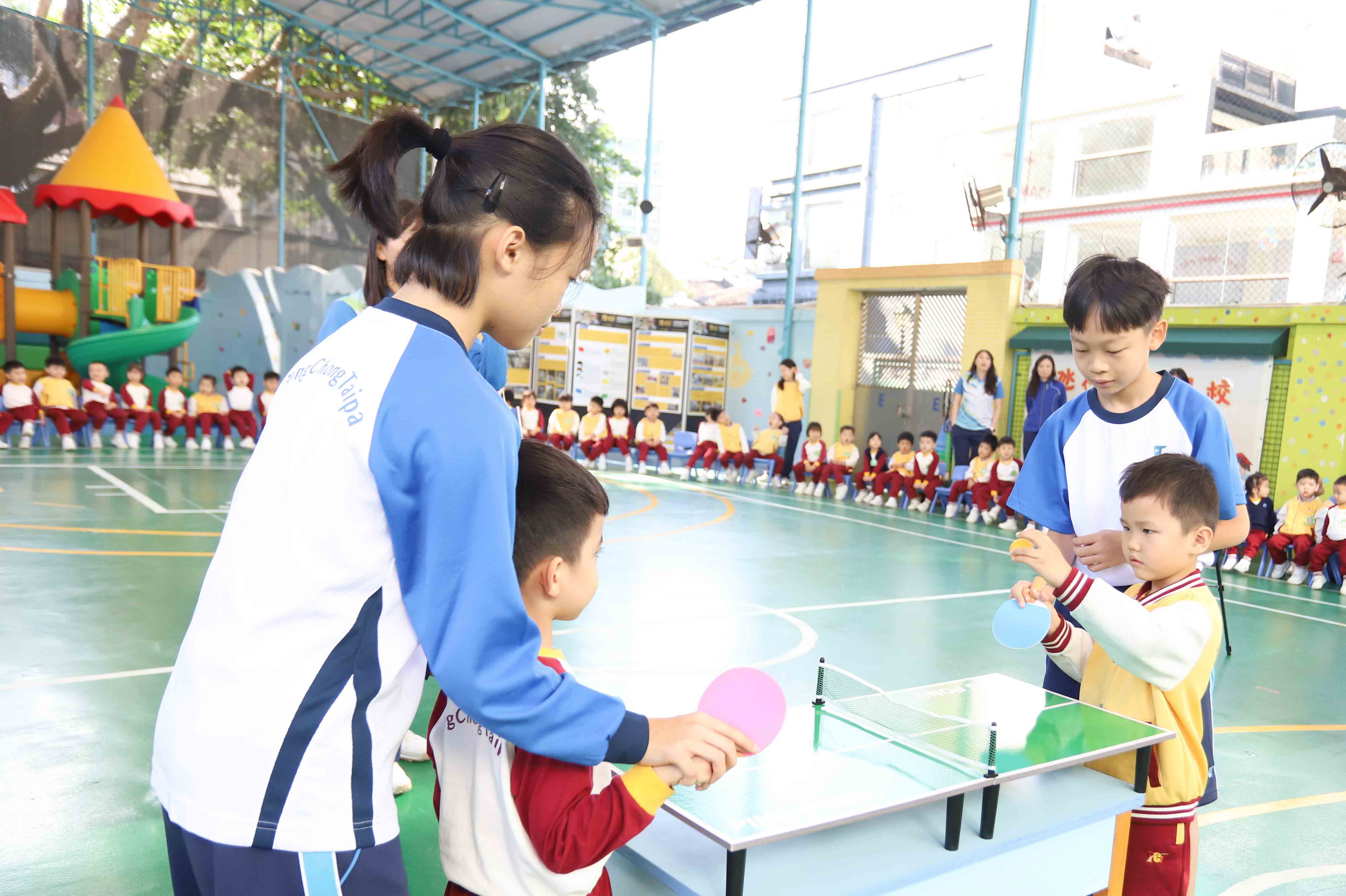活動以「全運多元運動」為主題,精選八項特色項目依次登場:花式單車的高超平衡技術引來驚呼連連;劍擊展現優雅與敏捷的雙重魅力;接力跑讓幼兒切身體會團隊合作的力量;霹靂舞以強烈節奏瞬間點燃全場氣氛;籃球代表選手示範傳球與投籃並與幼兒互動交流;乒乓球項目中,小學生的示範吸引幼兒目光,幼兒在專屬小球台上揮拍練習,提升專注與反應;羽毛球環節讓幼兒體驗精准發球的樂趣;手球活動中,幼兒在模仿與傳球中學會配合,展現勇於挑戰的精神。
