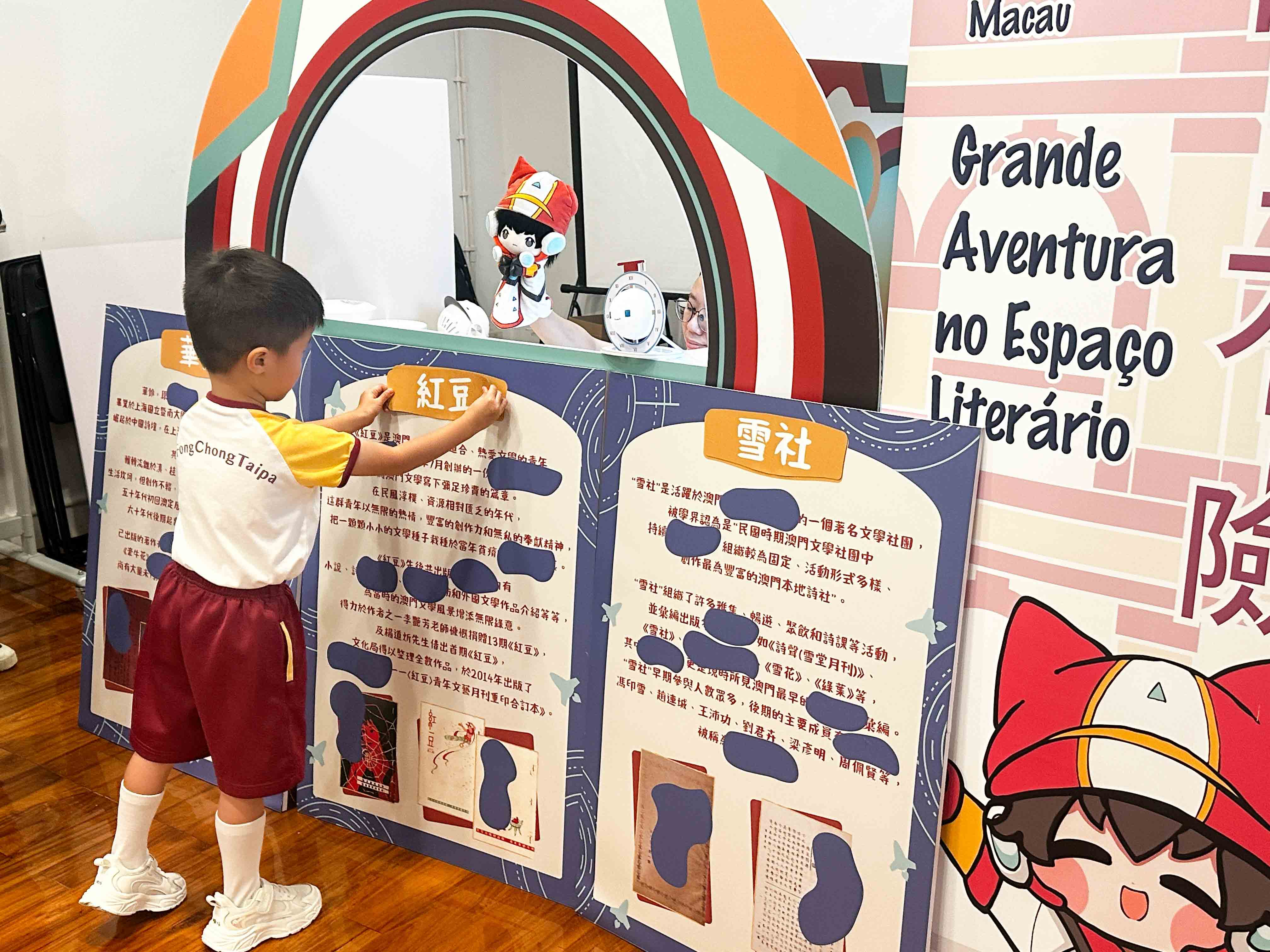 活動中幼兒協助戲偶角色尋找澳門文學碎片,走訪文學館內不同空間,初步認識了澳門文學的發展及文學作品。