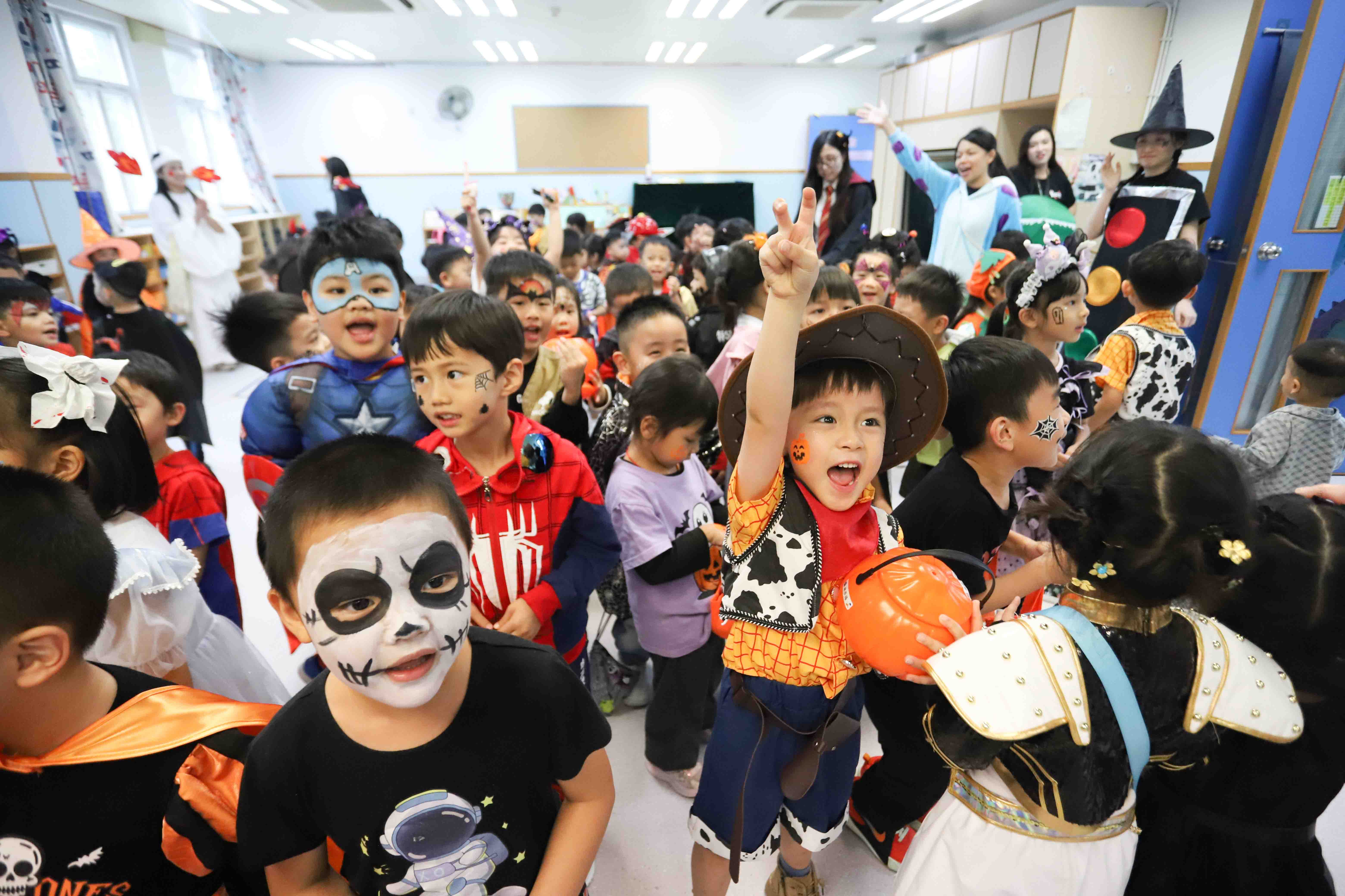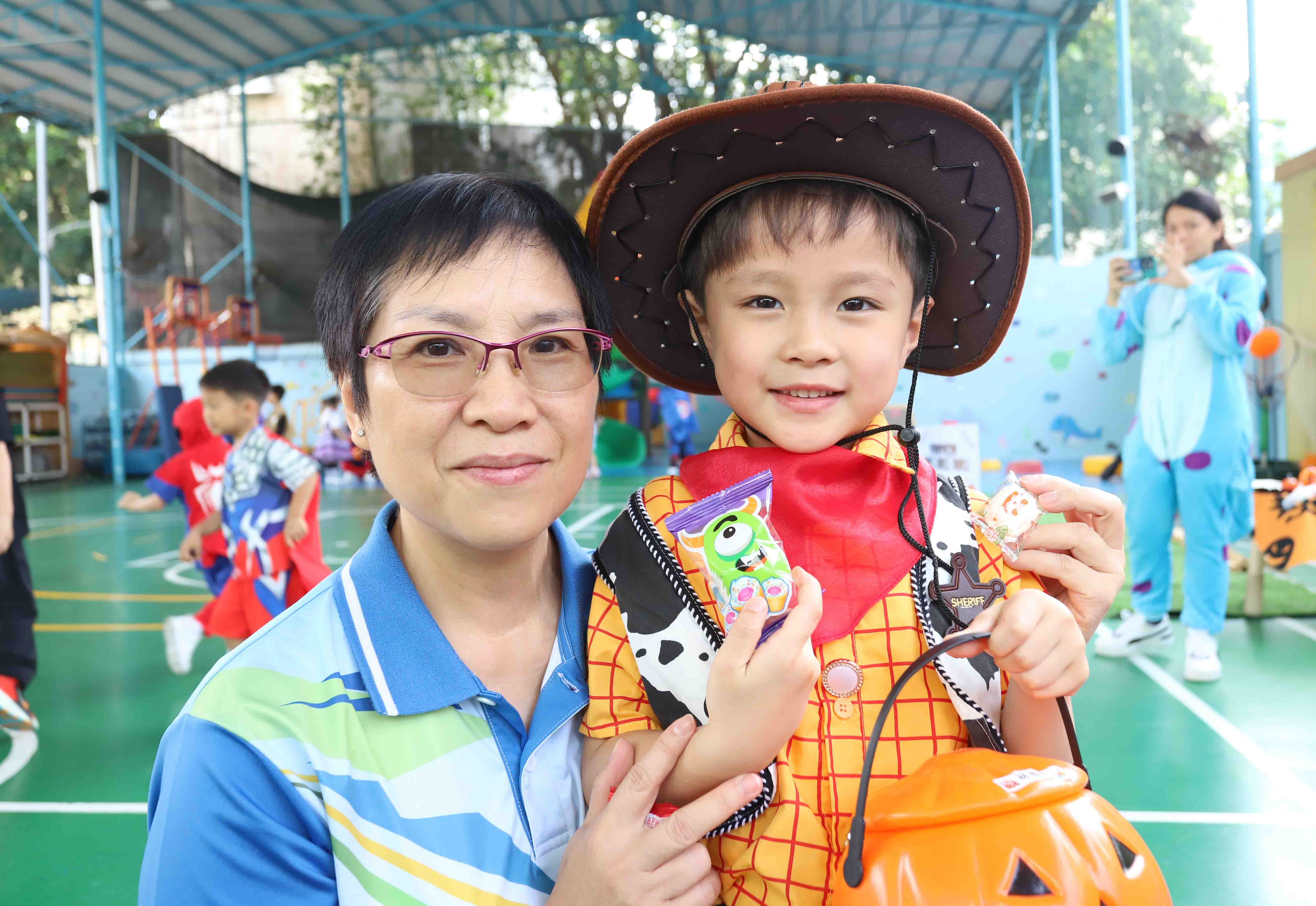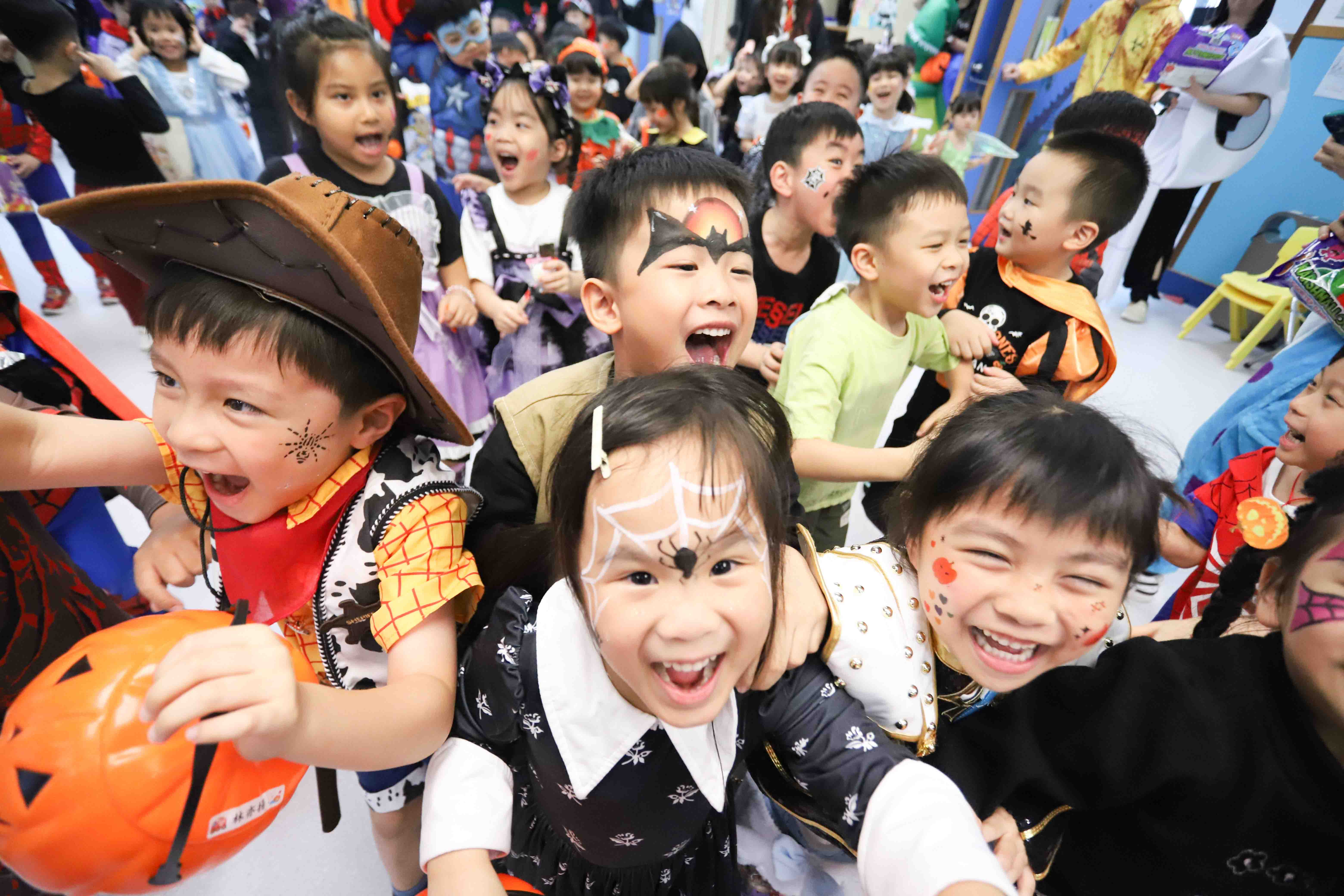 「Pumpkin Roll Roll Roll」滾南瓜大賽中,幼兒竭盡全力推動南瓜,現場加油聲此起彼伏;「Spooky House」鬼屋探險處處藏着驚喜,幼兒勇於挑戰,成就感十足;最受歡迎的是「Trick or Treat」糖果屋,幼兒以「Trick or Treat」口號換取滿滿糖果。各式各樣的攤位讓幼兒在歡樂玩樂中學習英文,收穫無窮樂趣。