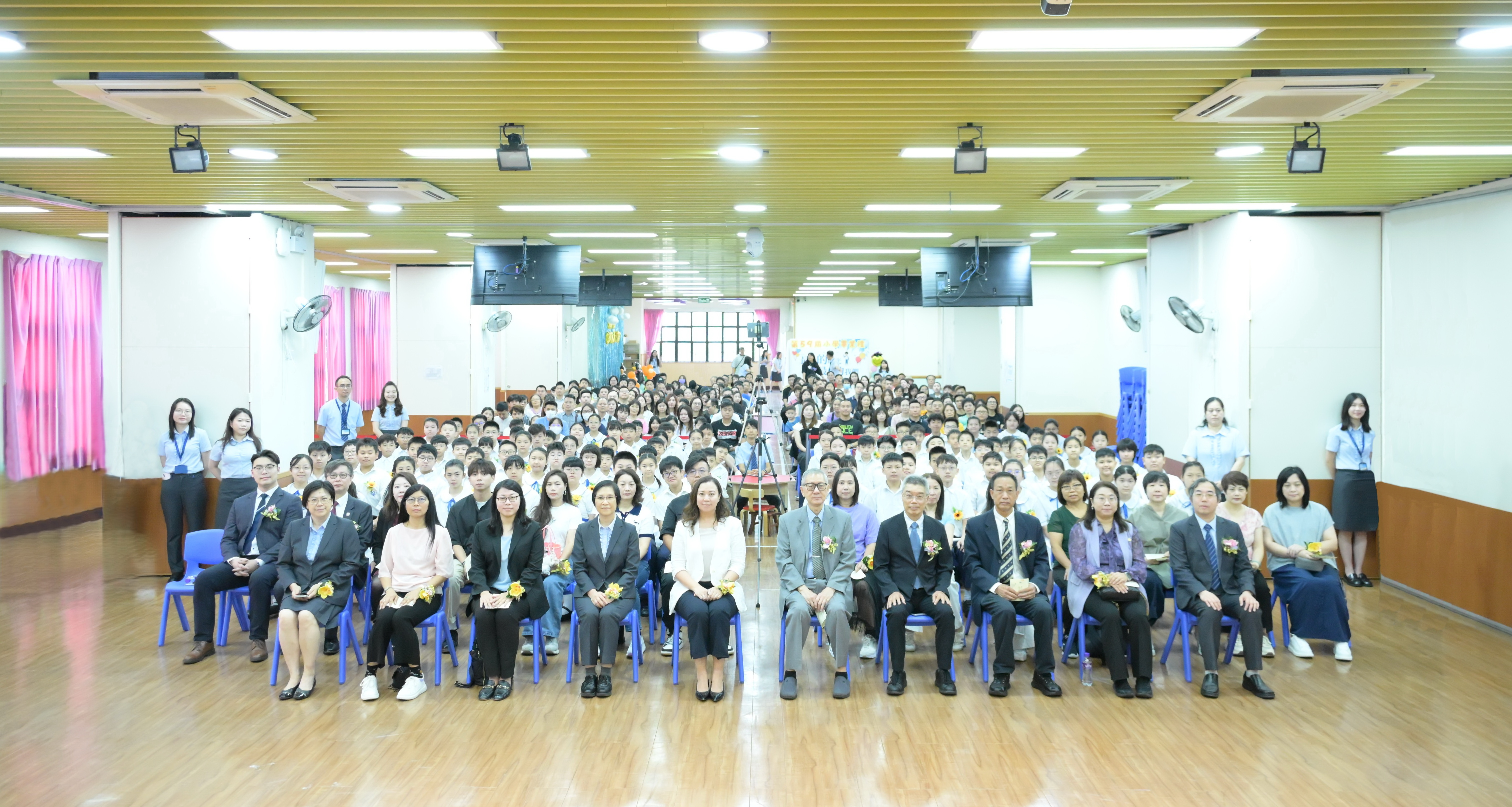 第五十九屆小學畢業典禮於7月9日在小學禮堂隆重舉行,九十八位畢業生齊聚校園,在家長、師長及嘉賓的見證下,踏上成長新起點。典禮出席嘉賓有教青局蔡敏芝代副局長、澳門工會聯合總會張國然副會長、李靜儀副理事長、辦學實體領導、家長教師會代表、中國銀行代表等。