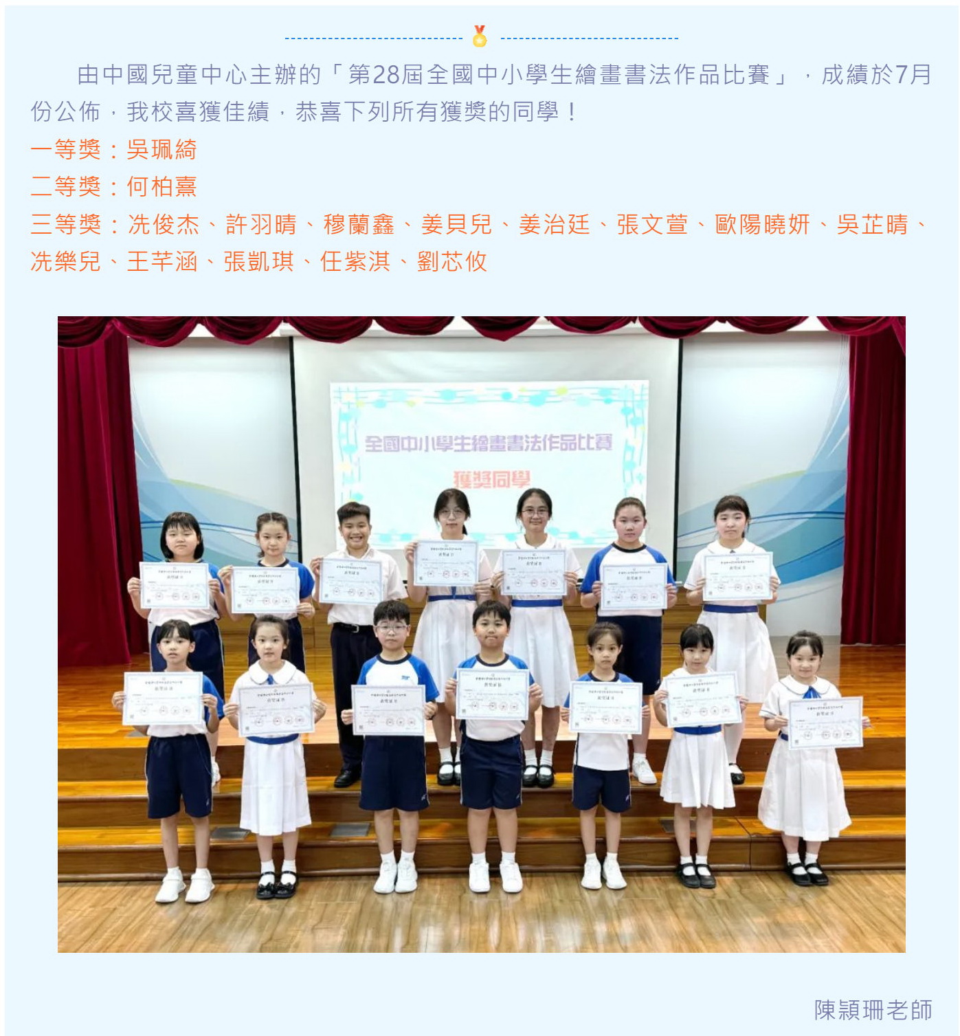【小學部】「第28屆全國中小學生繪畫書法作品比賽」獲佳績
