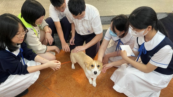 活動伊始,中心職員向同學們詳細介紹了機構的服務宗旨、日常運作,並深入解讀此次「慈悲犬互動教育」活動的重要意義。隨後進入令人期待的互動環節,同學們踴躍參與,紛紛把握此次難得的機會,小心翼翼地撫摸這些可愛萌犬的毛髮,並主動詢問它們的生活習性、訓練過程等,現場氣氛熱烈而溫馨。透過此次活動,同學們不僅對機構的公益服務有了全面認識,更領略到此次活動在培養愛心、增進人與動物和諧相處方面的重要價值,為同學們的健康成長注入了溫暖而積極的力量。