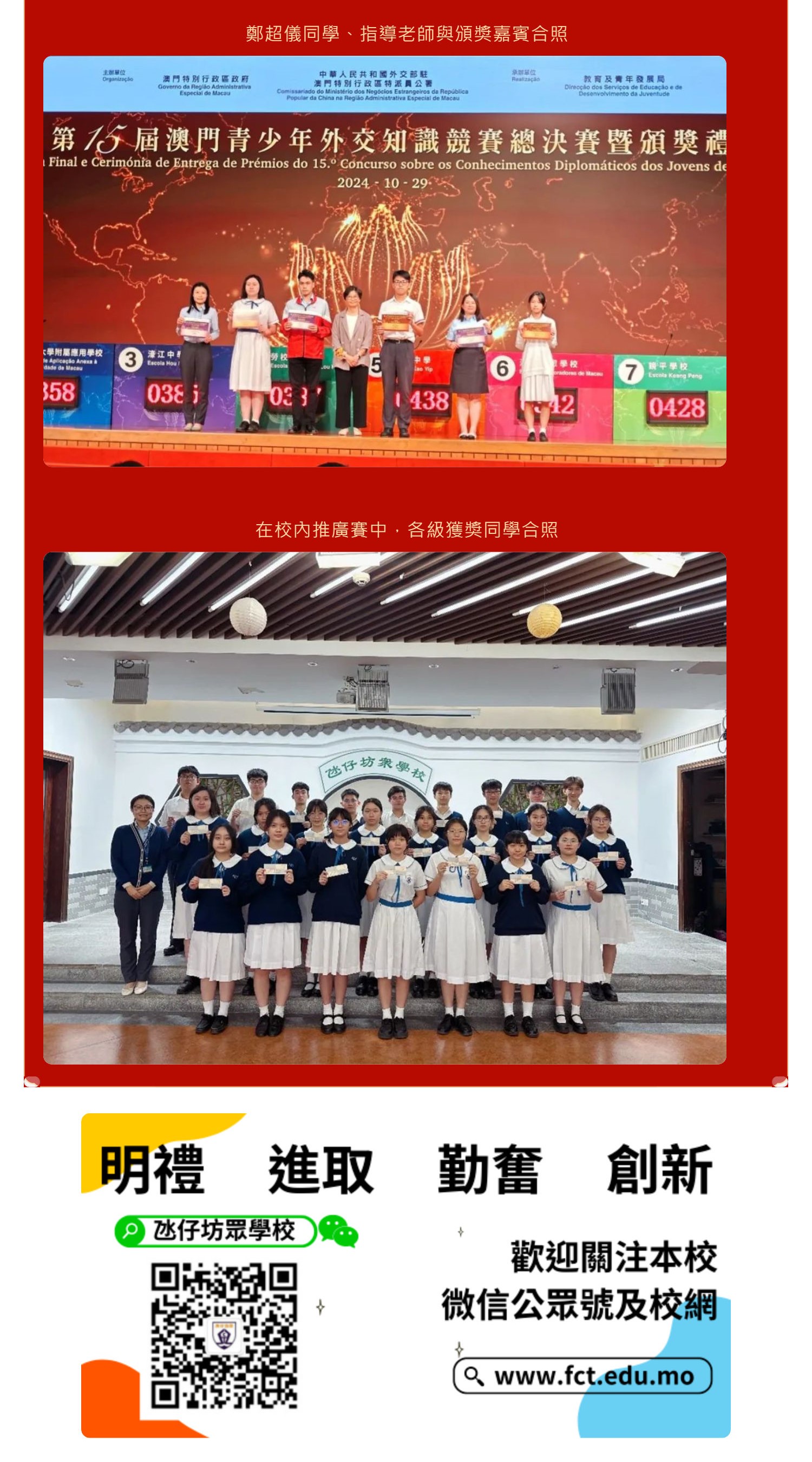 參加「第十五屆澳門青少年外交知識競賽」喜獲一等奬
