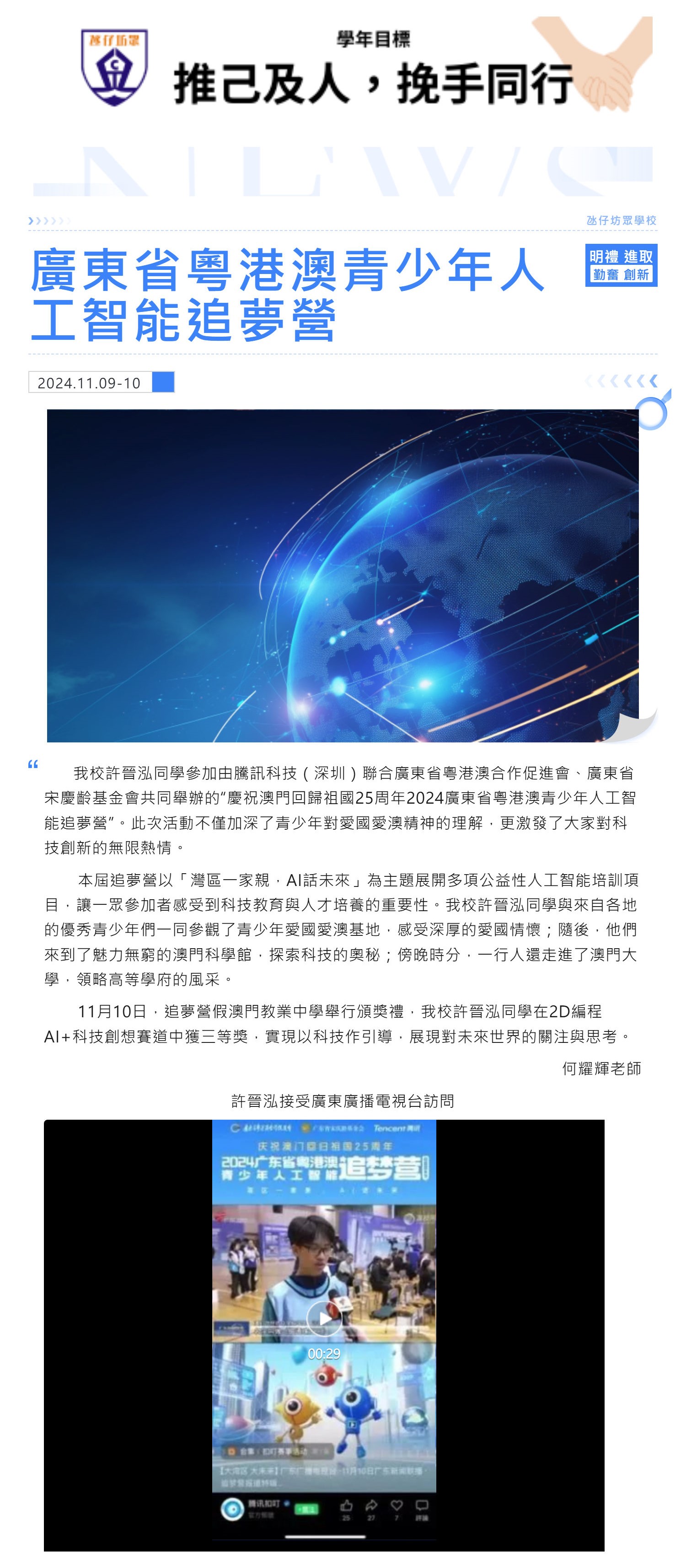 我校同學參加「2024廣東省粵港澳青少年人工智能追夢營」獲三等獎